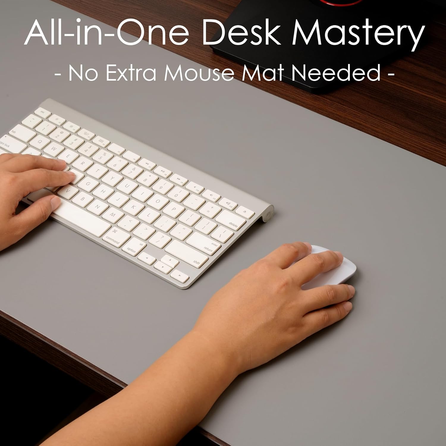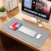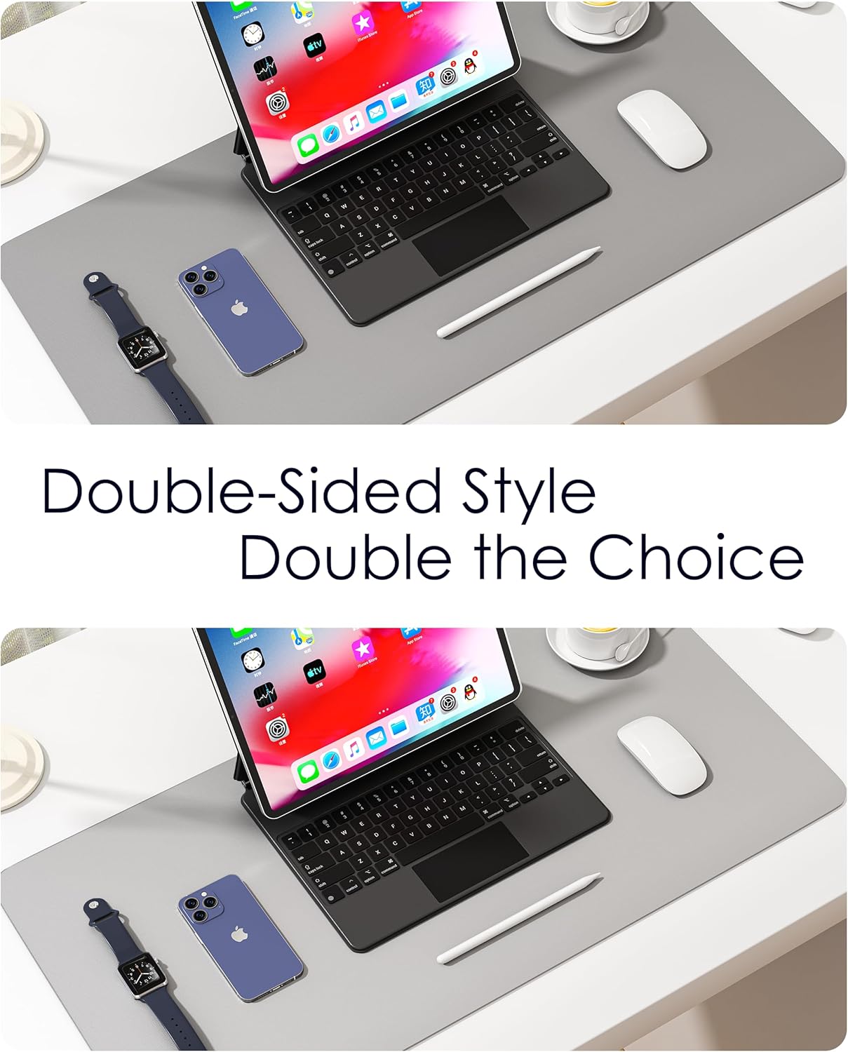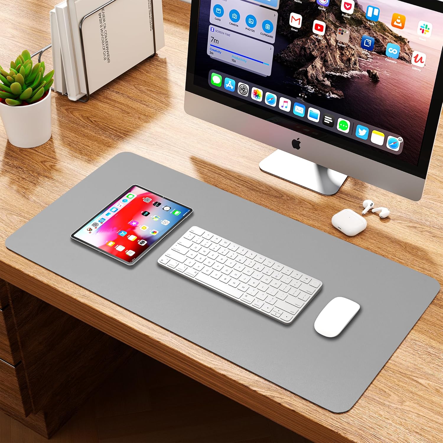 WAYBER Leather Desk Pad Protector, Waterproof Mouse Pad, PU Desk Mat, Office Desk Cover, Desk Writing Mat for Office/Home/Work/Cubicle (Gray/Silver) 31.5×15.7in