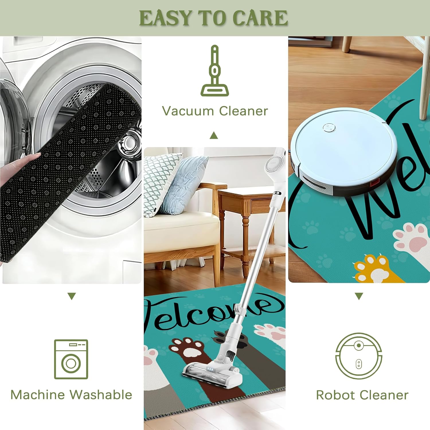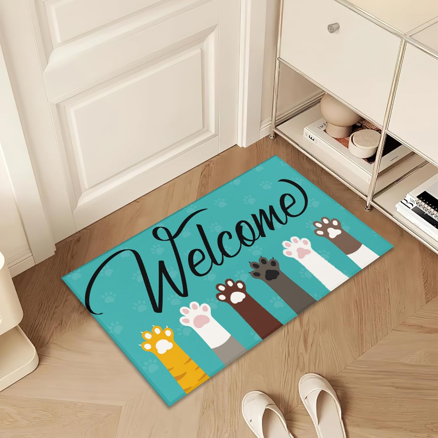 Welcome Cat Dog Paws Welcome Door Mat,Cute Cartoon Doormat for Outside Entrance Home Decor,Non-Slip Carpet Rugs with Felt Entryway Mat for Patio Indoor Front 17″ x 30″