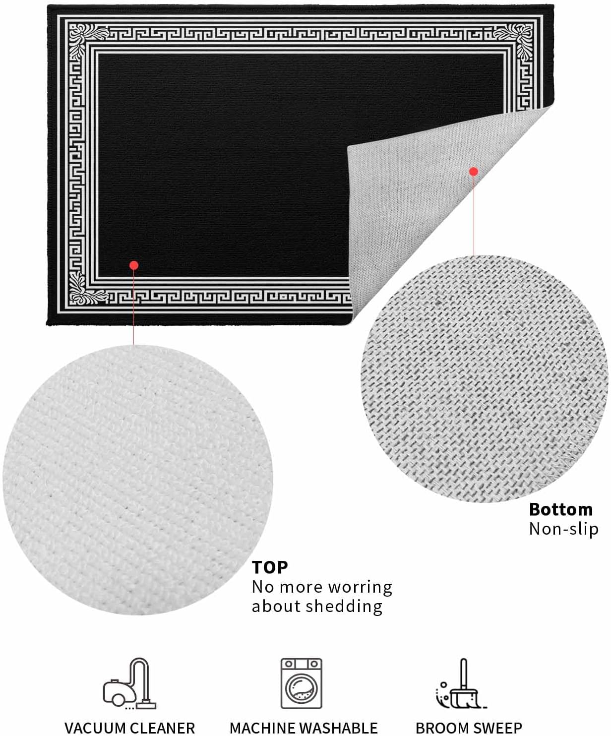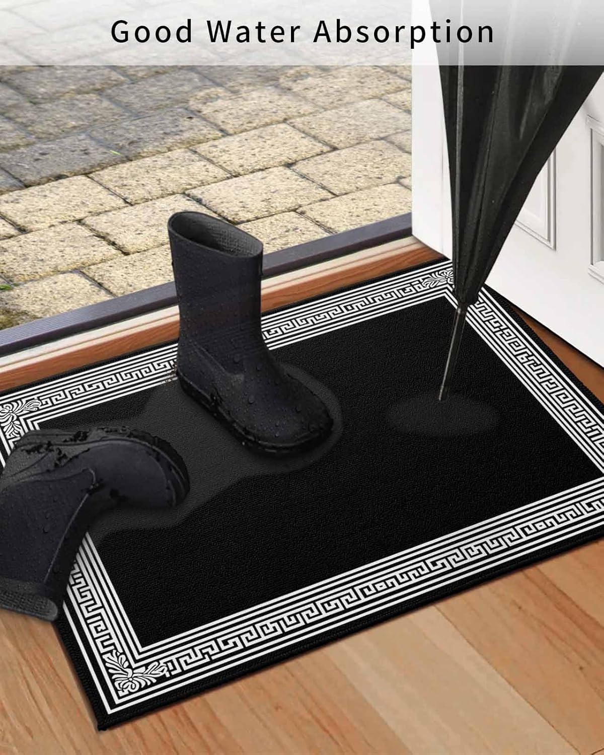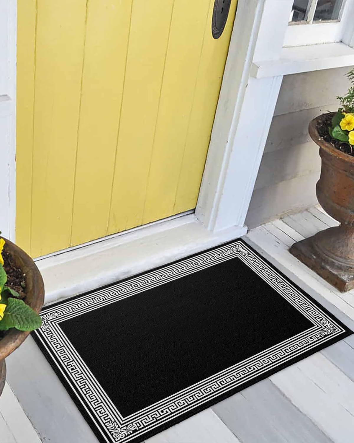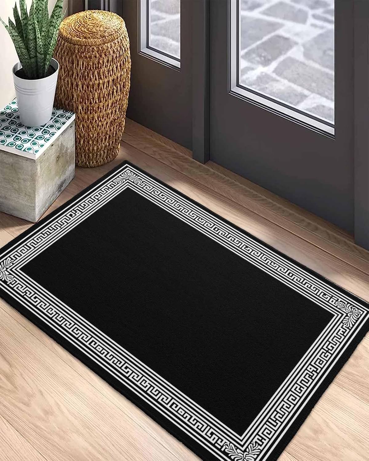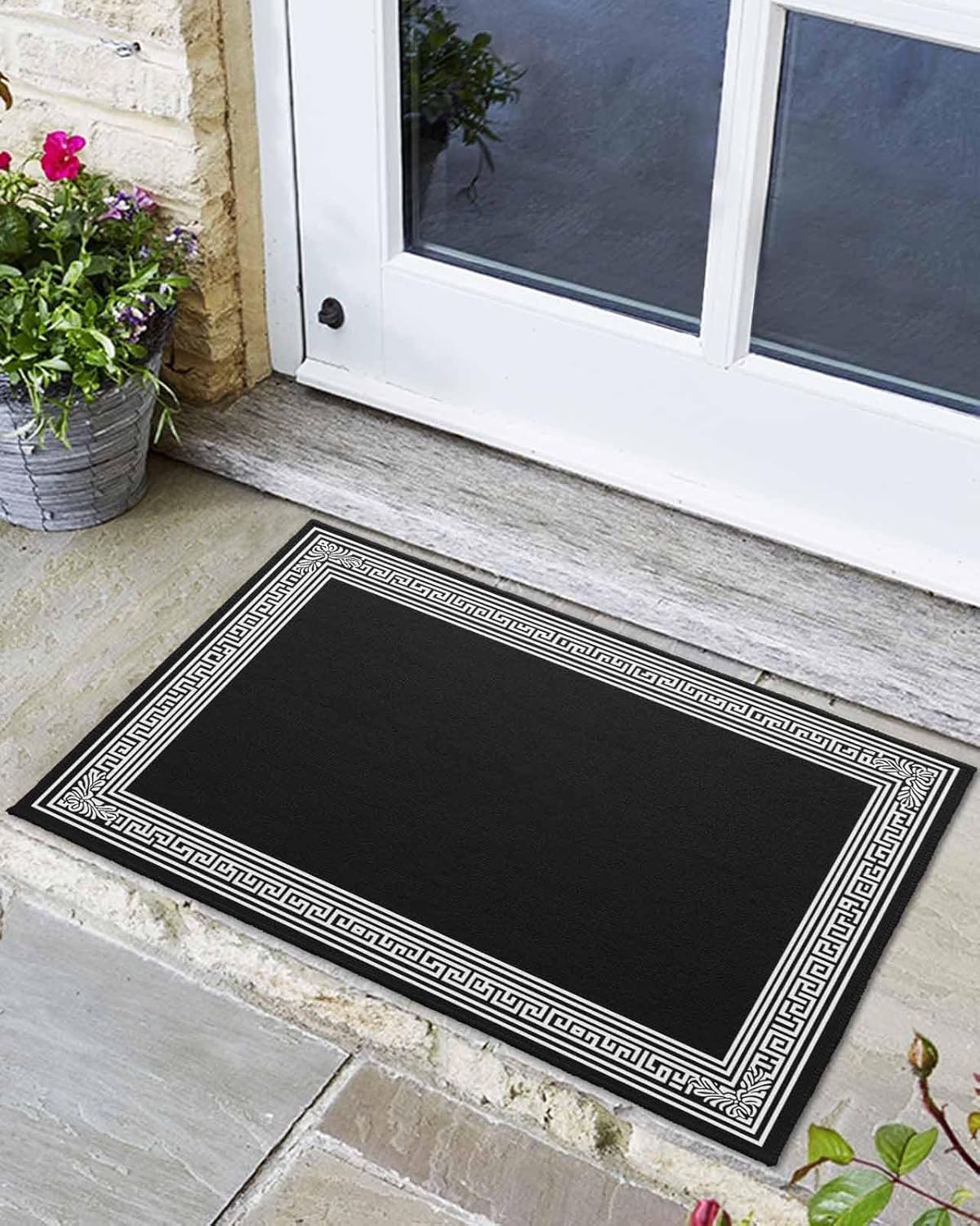 Welcome Mats for Front Door, Black Geometric Key Design Rugs Non Slip Absorbent Indoor Doormat, Classic Floral Pattern Entrance Rug Washable Floor Mats for Entryway,24x36in
