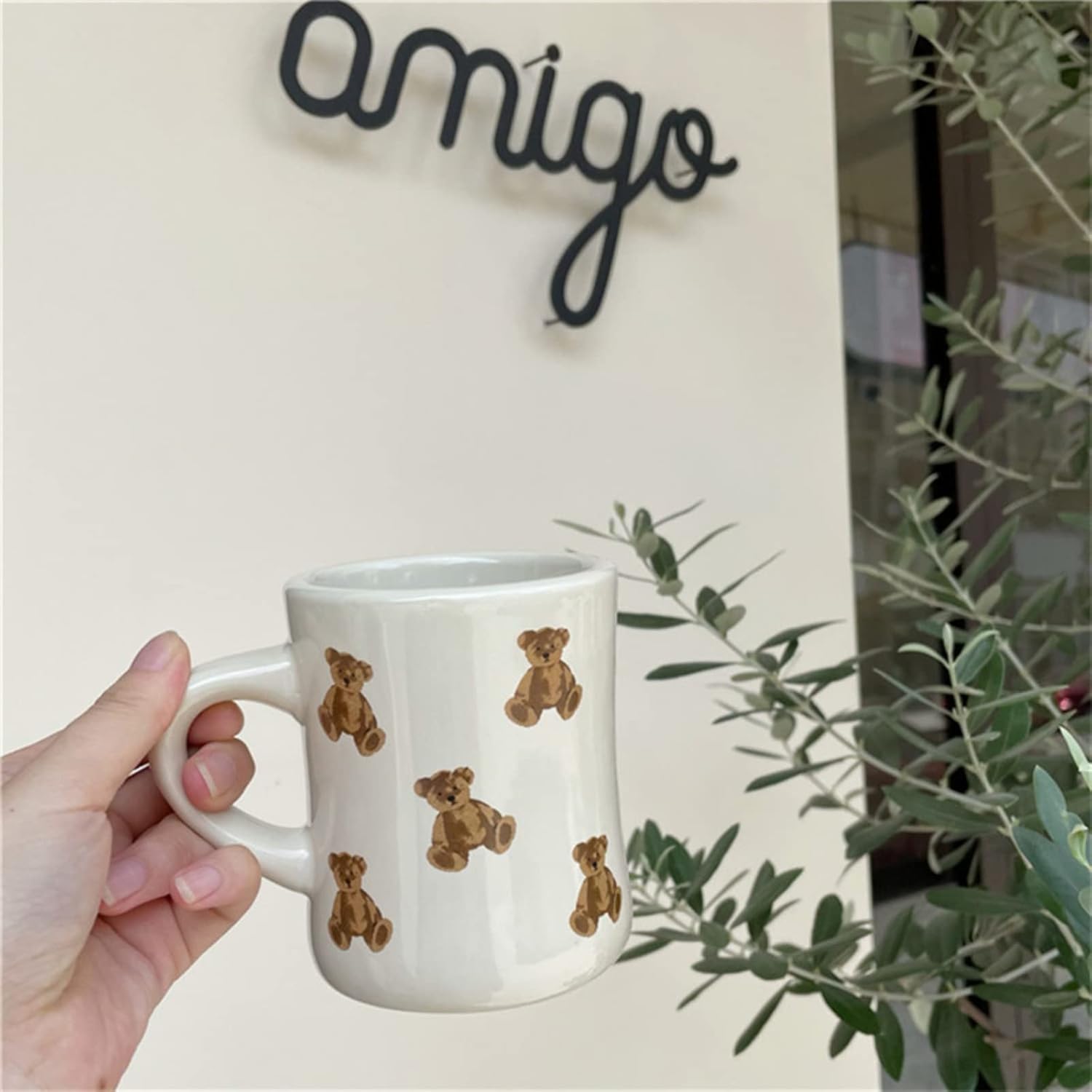 This is a very cute cartoon bear print ceramic mug, 350ml/11.84oz capacity, suitable for coffee, tea, milk and other kinds of drinks.