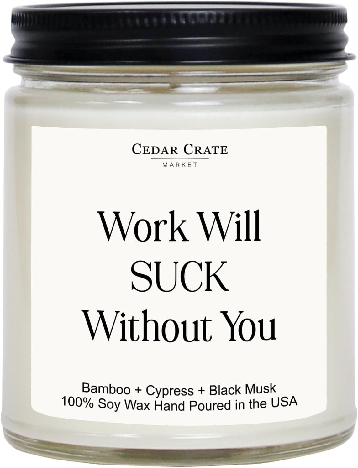 Work Will Suck Without You – Going Away Gifts for Coworkers, Boss, Best Friend, New Job Gifts, Coworker Leaving, Work Bestie Present, Home Office, Friendship Candle, Funny Candle for Women, Men