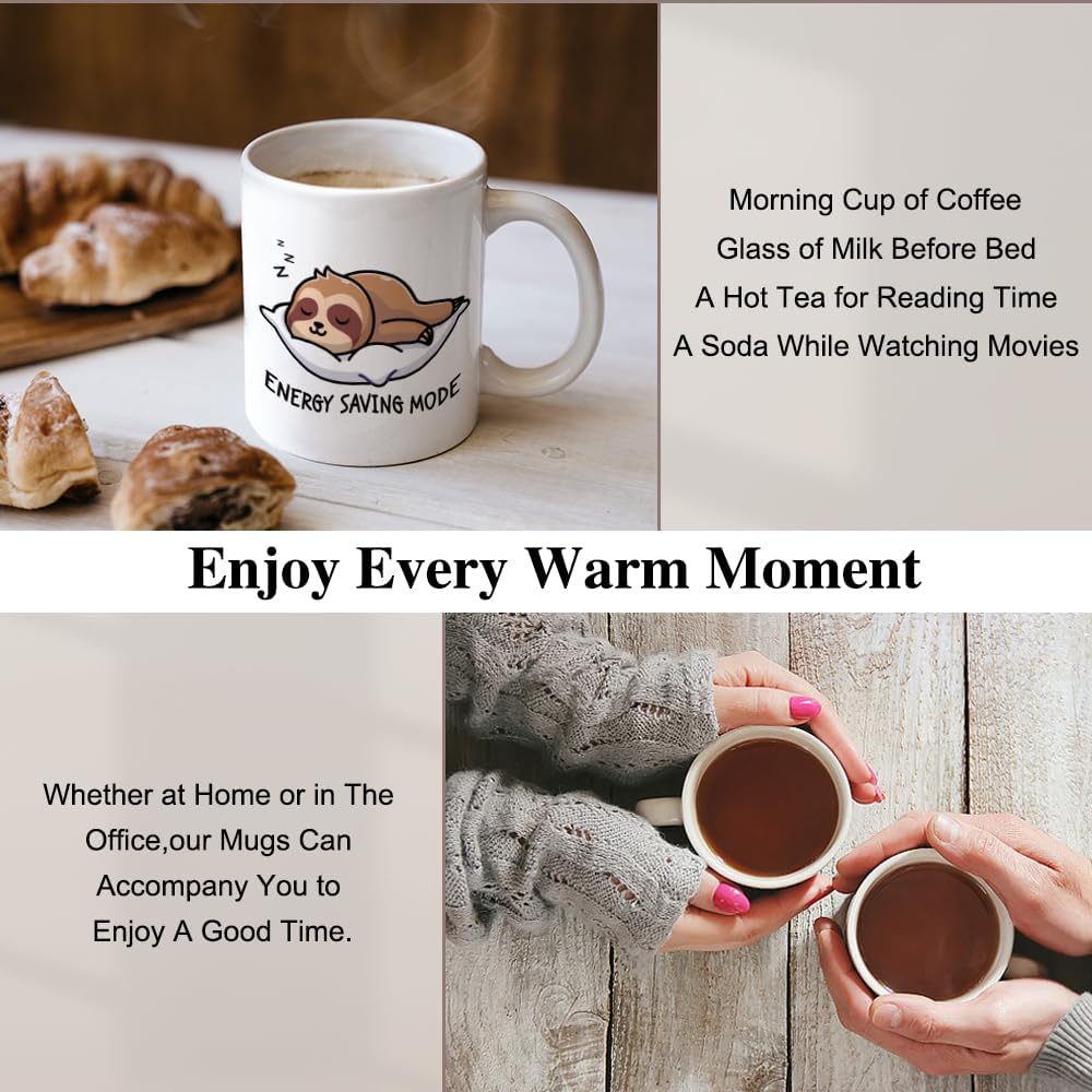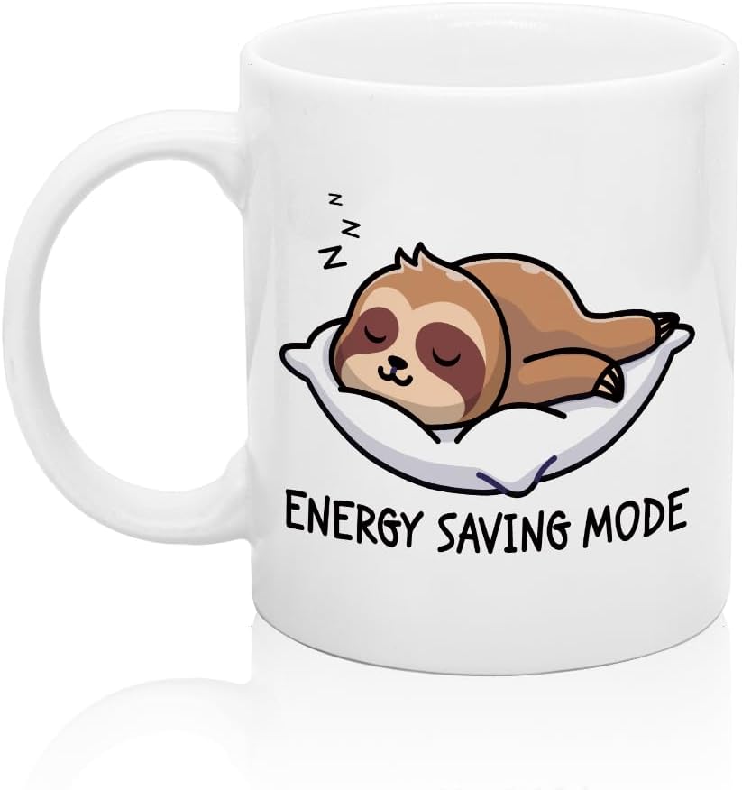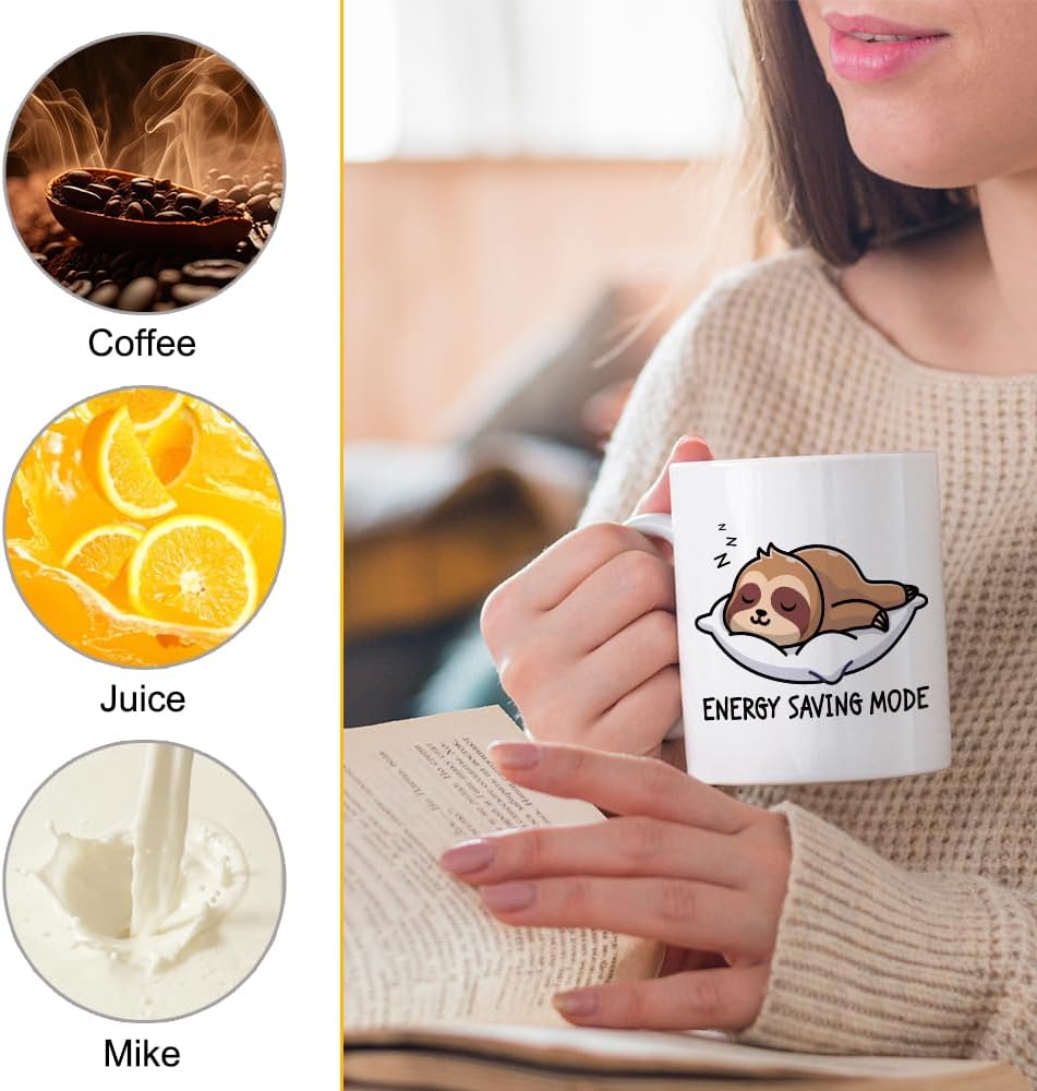 XQLZY Energy Saving Mode Sloth Funny Coffee Mug, Cute Work, Lazy Mode Mug, Humorous Sarcastic Office Gifts for Men Women Friend Coworker Boss Sloth Lover, Gifts for Woman Sister BFF