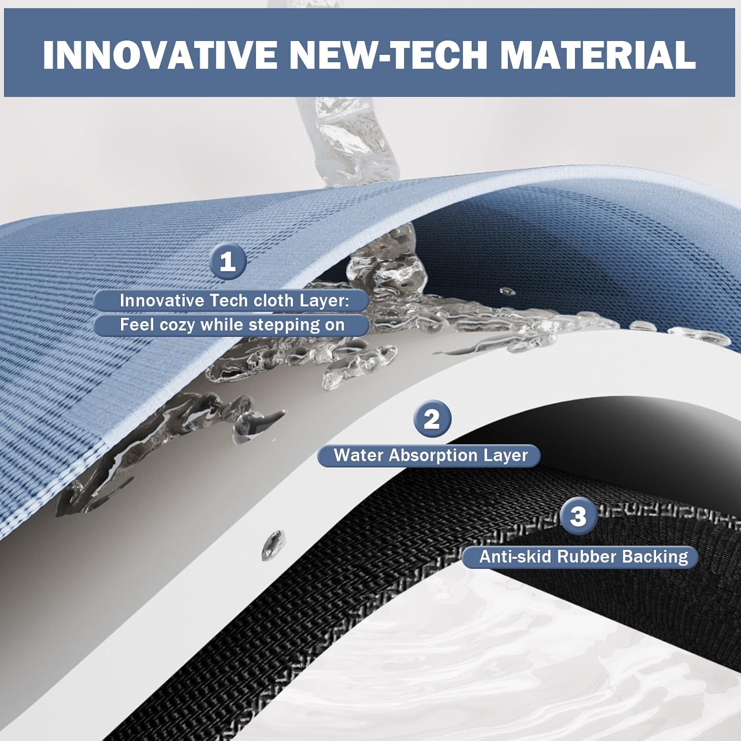 YDKGL Non Slip Bath Mat, Rubber Backing Ultra Thin Bathroom Rugs Fit Under Door Quick Dry Super Absorbent Washable Bath Rug Shower Mat for Bathroom Floor Bathtub Shower Sink, Easy Care Blue 16″x 24″