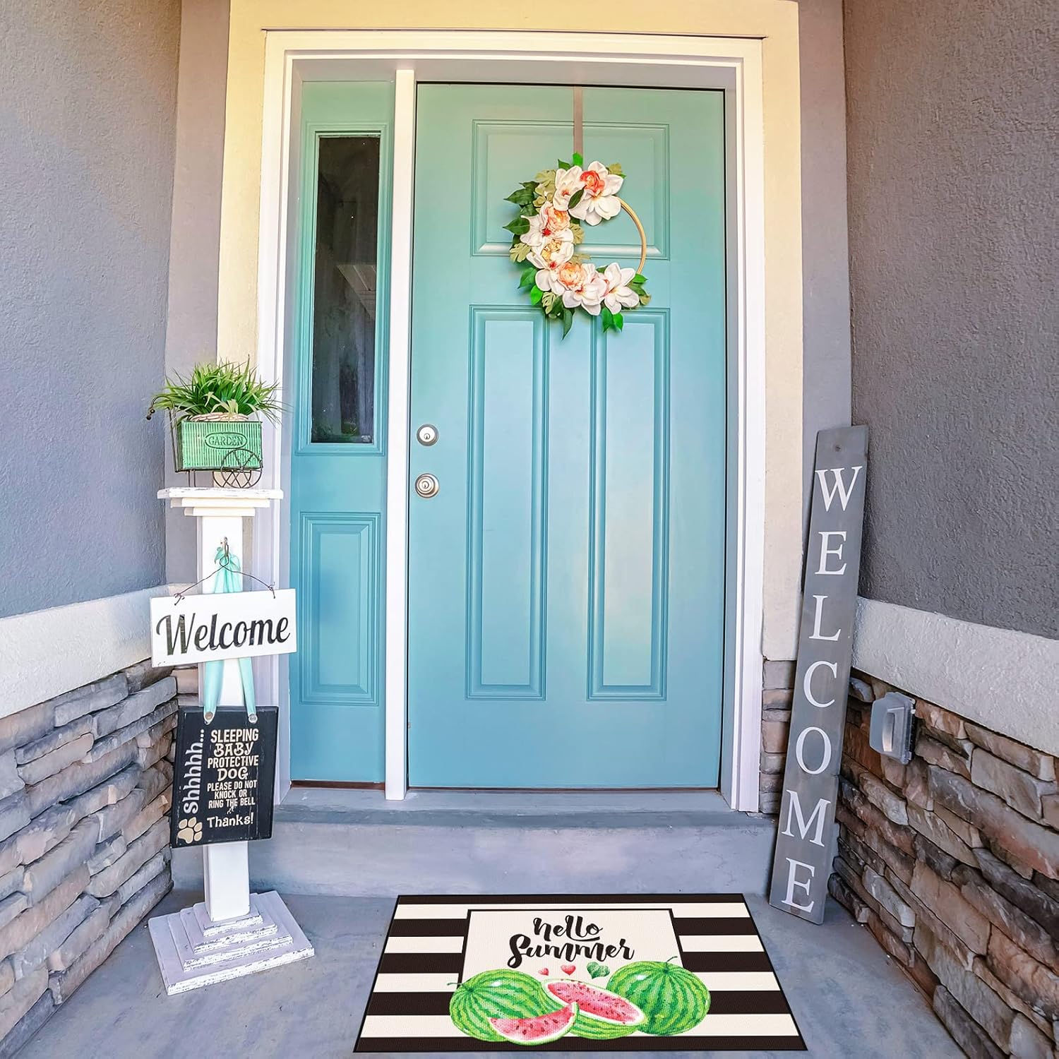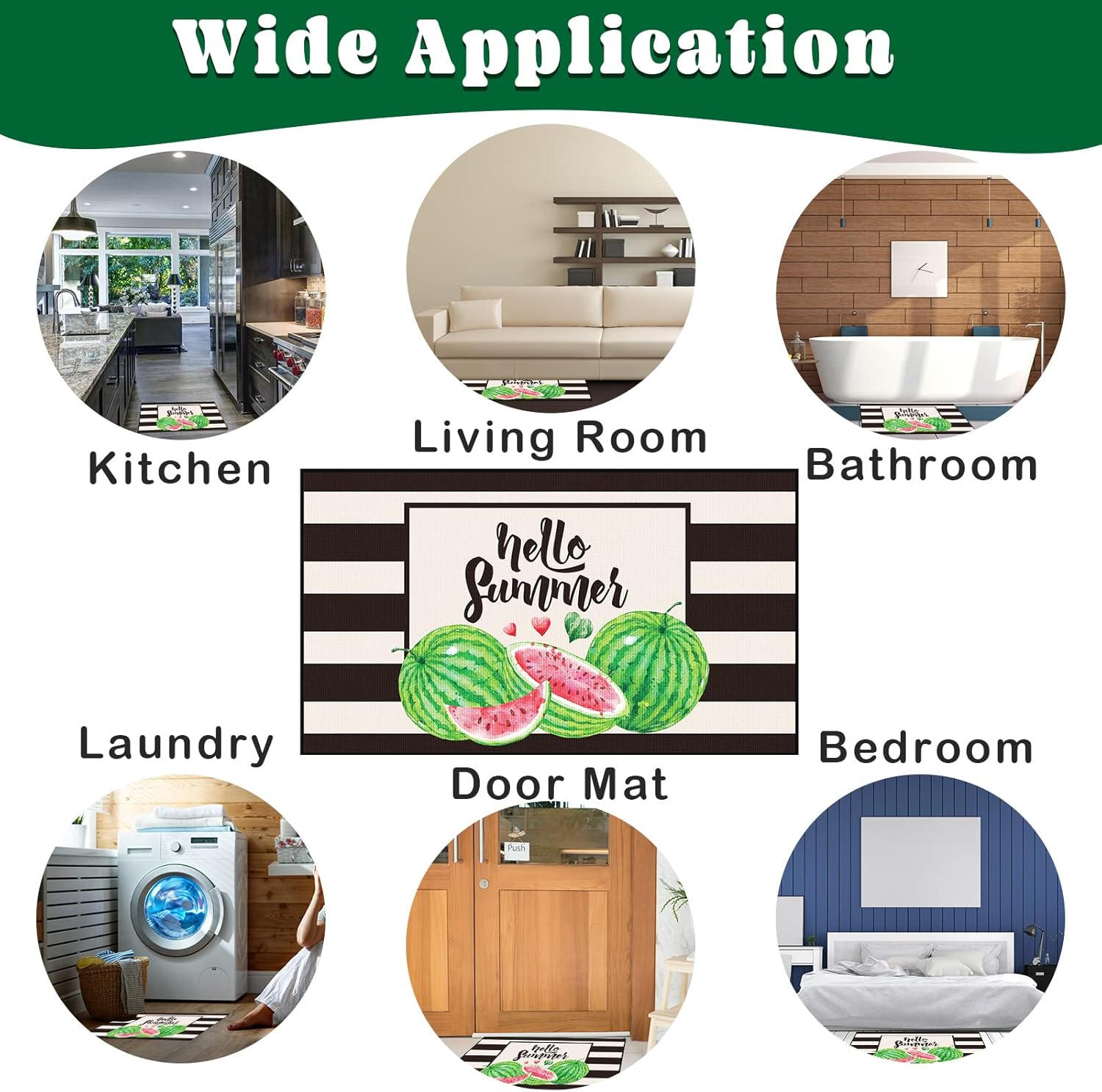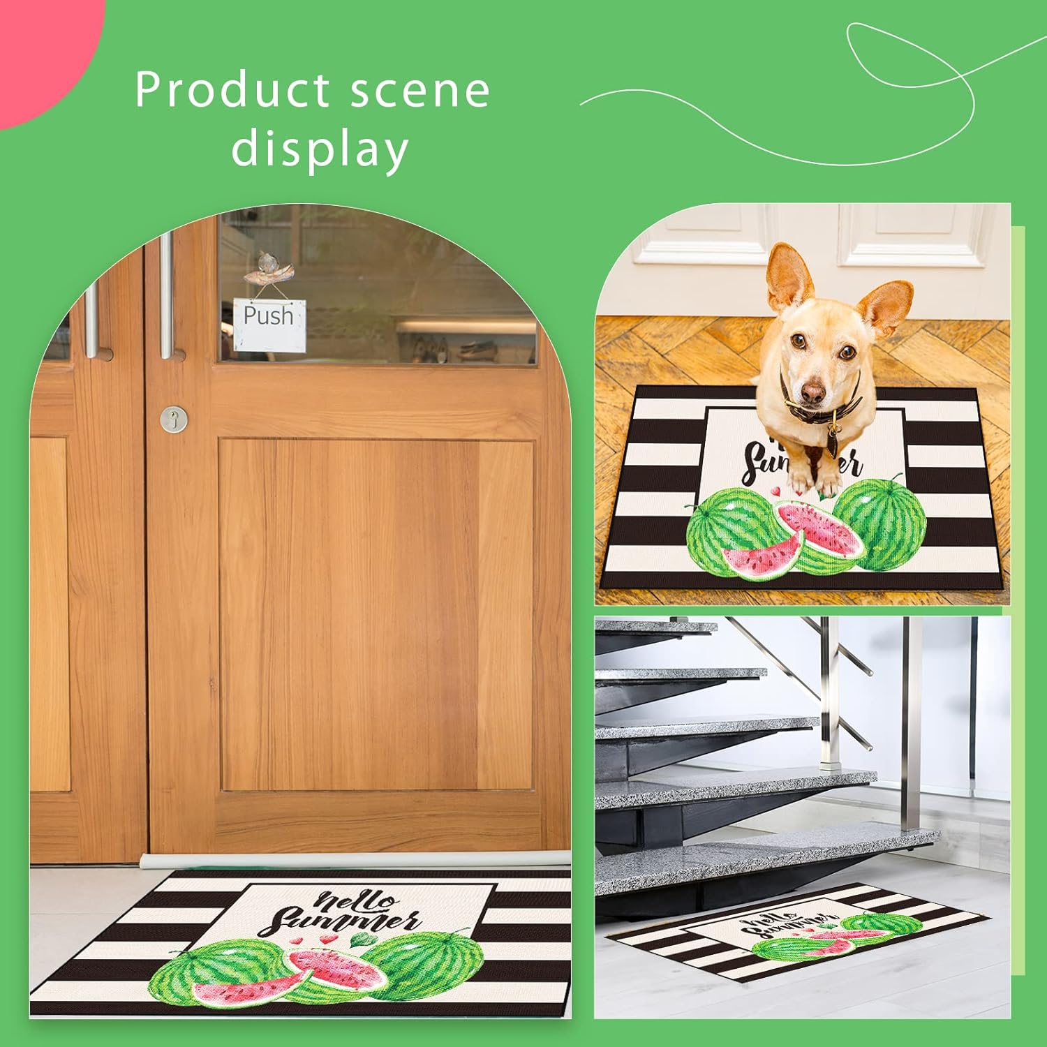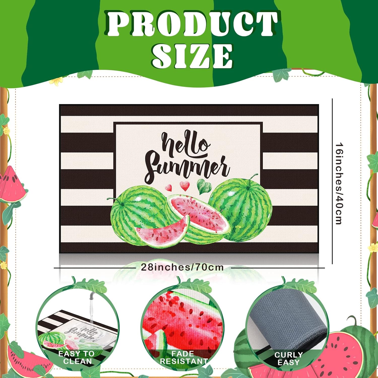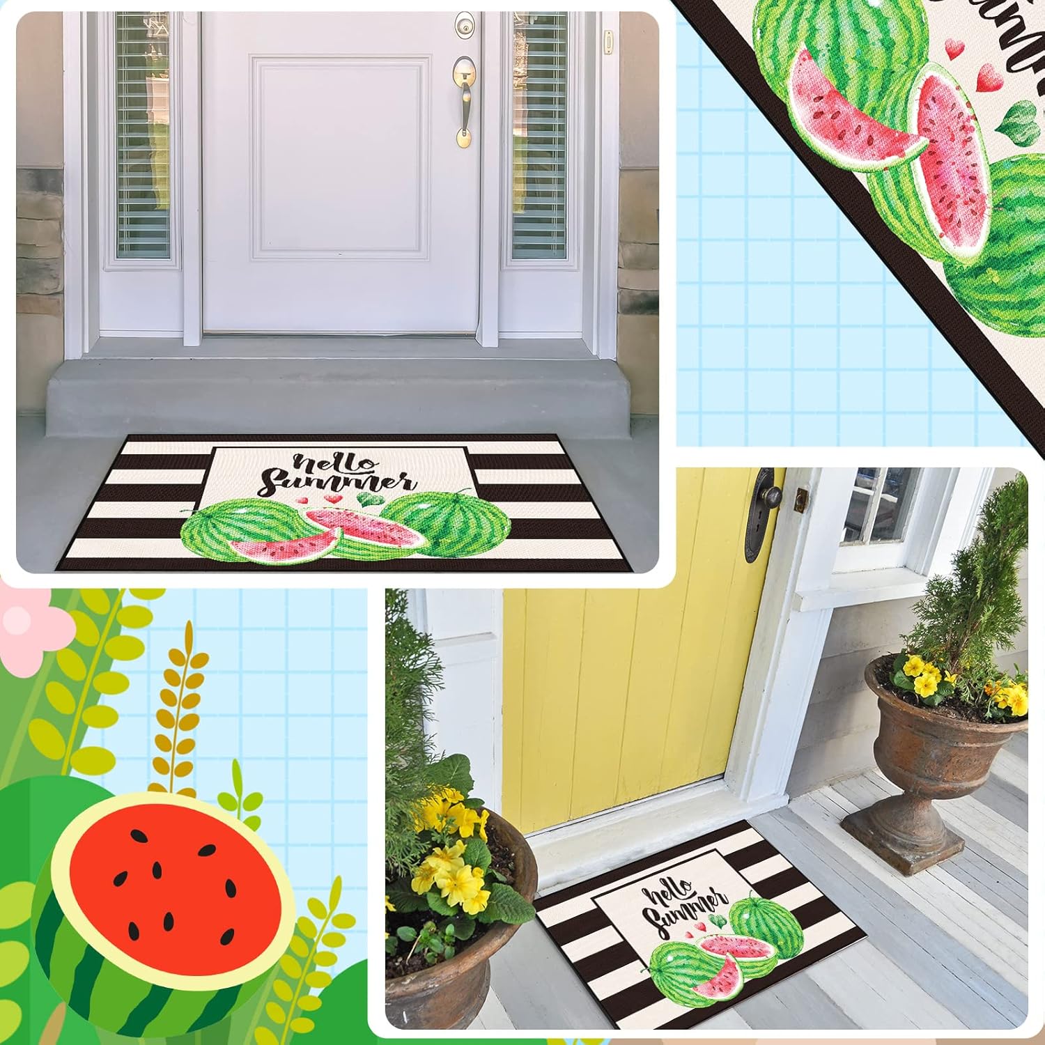 Zhanmai Welcome Mats Door Mat Indoor Entrance Cute Decorative Outdoor Doormats Non Slip Outside Door Mats for Front Spring Rugs, 16″ x 28″(Watermelon)